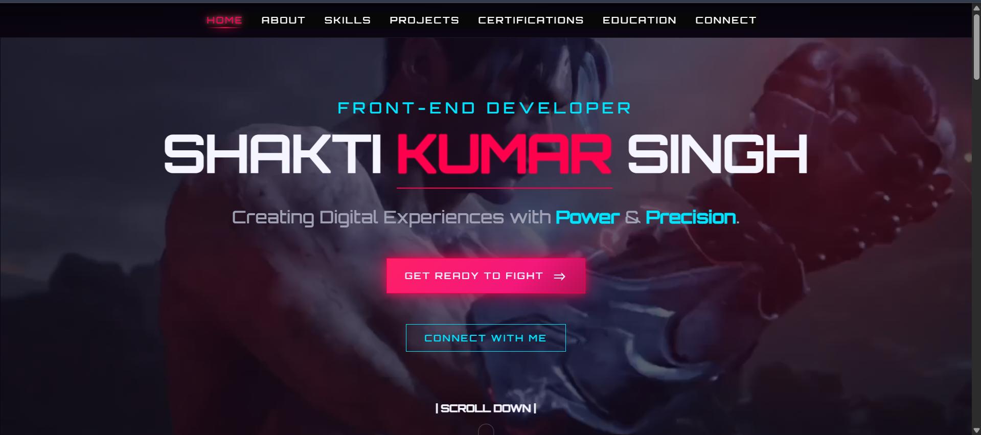 Crafting pixel-perfect interfaces with the power of HTML, CSS, and JavaScript. Every project is a battle, every line of code a combo move. Ready to level up the web experience.”